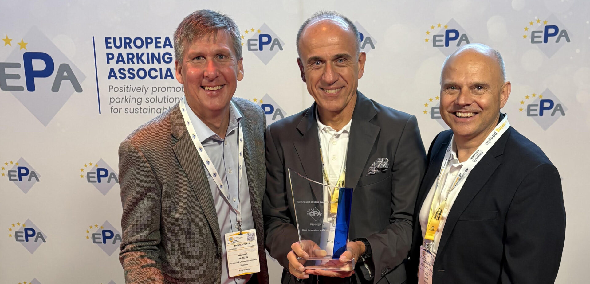 – Vi är väldigt stolta över den här utmärkelsen. För oss på Dukaten har det här handlat om verklig förändring från grunden – vår idé har blivit verklighet! Vi har kunnat erbjuda boende och besökare ett enklare och mer pålitligt sätt att parkera, samtidigt som vi som operatörer fått bättre insikt och kontroll, säger Mattias Nilsson, mobilitetschef på Dukaten, som var på plats i Bryssel för att ta emot priset.